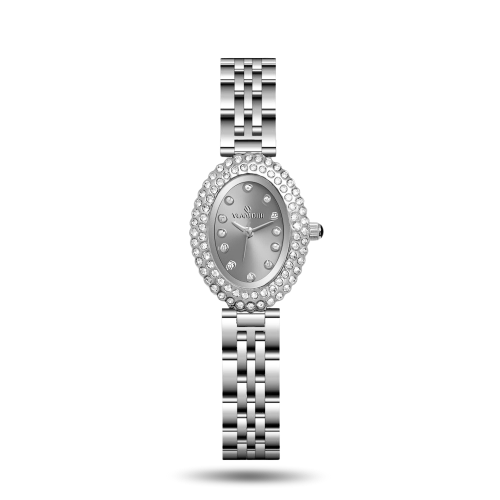 • مينا الساعة مرصع بالكرستال