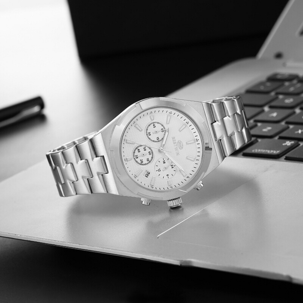 ساعة رجالية ساحرة بلون الفضي مع الابيض BW993