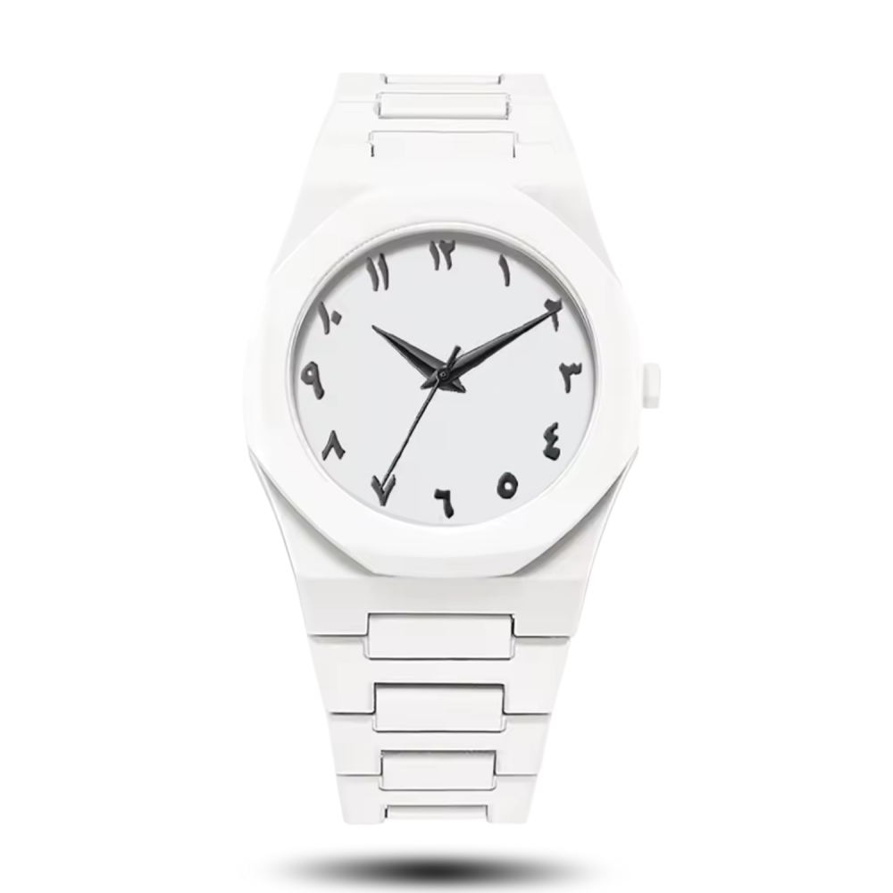 ساعة ارقام عربية سير كاربون بلون الابيض K033